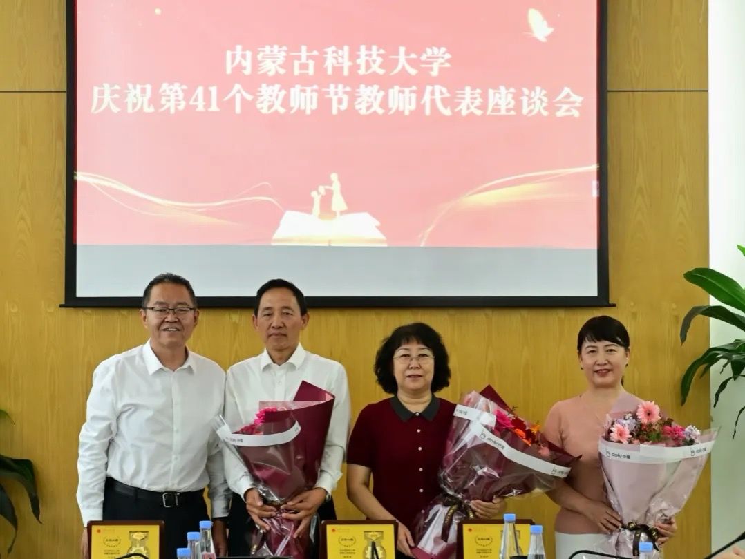 9月9日下午,在第 41 个教师节来临之际,学校召开庆祝教师节教师代表座谈会。座谈会围绕 “以教育家精神铸魂强师,谱写教育强国建设华章” 主题,共庆节日、回望初心。校党委书记呼和参加座谈会,副校长屈忠义主持会议。老中青40余名教师代表参会。