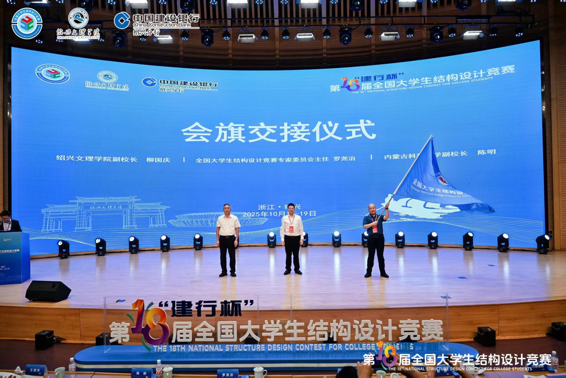 10月19日,在第十八届全国大学生结构设计竞赛闭幕式上,2026世界杯官网党委委员、副校长陈明从赛事主办方手中接过赛旗,标志着学校全面开启2026年第十九届全国大学生结构设计竞赛的筹备工作。
