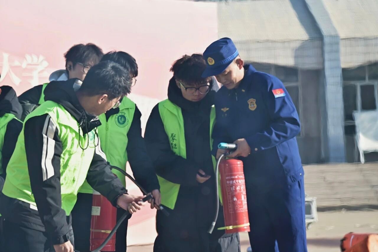 随后开展的消防安全培训中,消防员通过案例分析、实操演示,系统讲解火灾预防、报警流程及灭火器“提拔握压”操作口诀。在灭火实操环节,师生分组使用干粉灭火器扑灭火源,掌握“对准火源根部喷射”的关键要领。