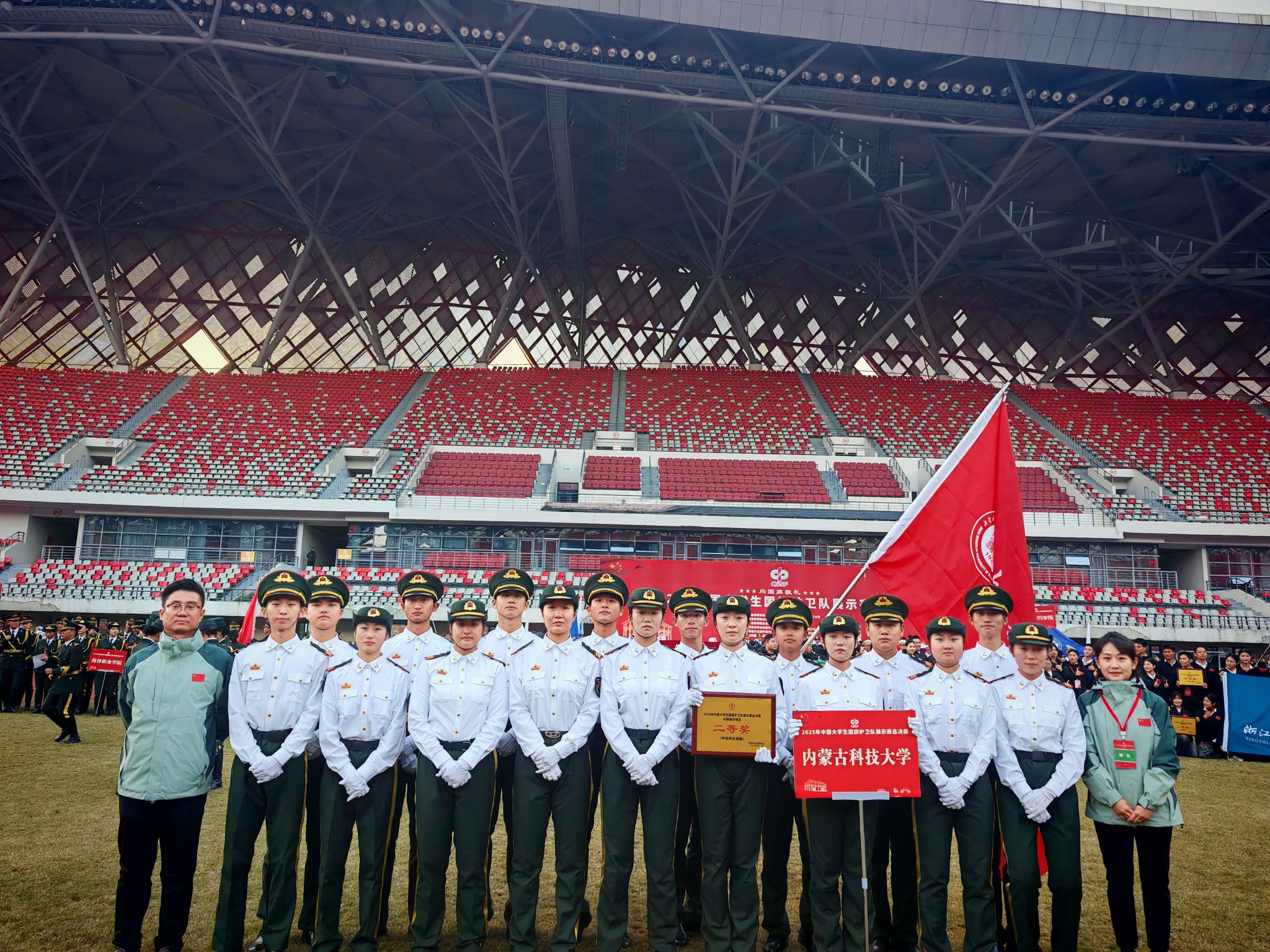 本次赛事设置升旗展示与队列动作两大竞赛项目。世界杯官网国旗护卫队,从齐步与正步的流畅转换,到展旗、升旗的精准衔接,他们以挺拔的姿态、铿锵的步伐,在这片红色土地上上演一场关于忠诚与信仰的巅峰对决,最终在升旗展示项目甲组混编组中荣获二等奖,取得团体总分第七名的好成绩。