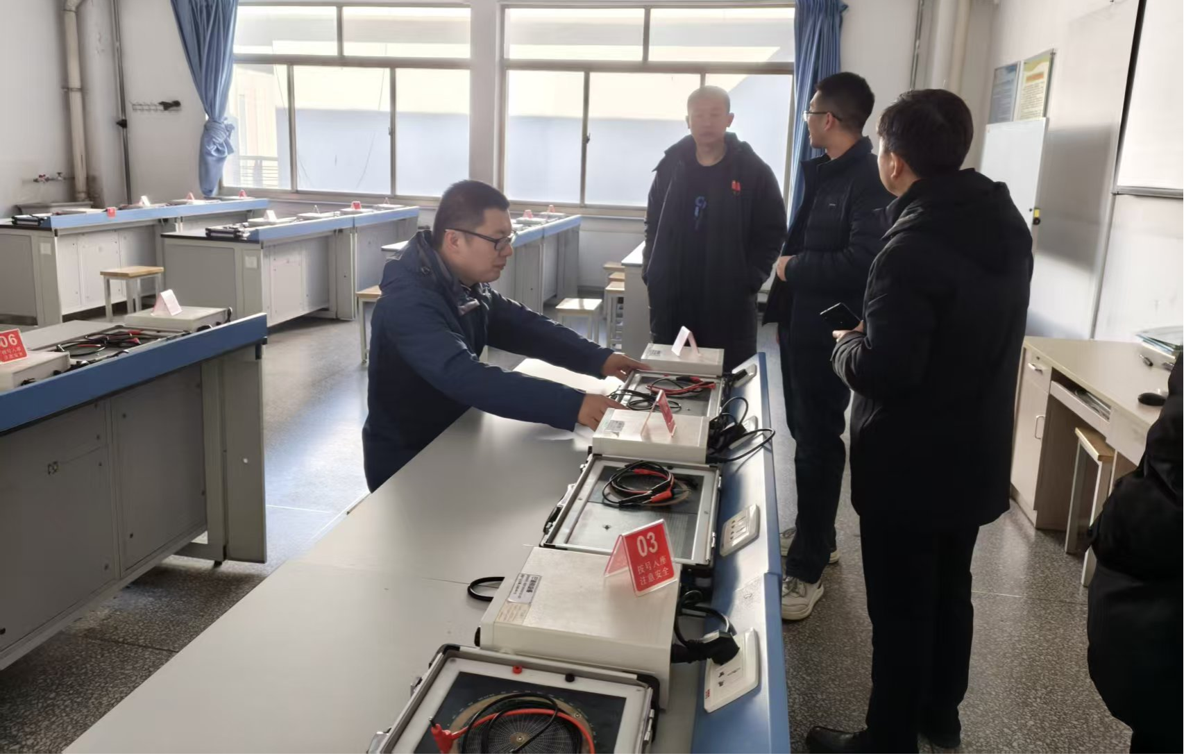 赤峰学院调研组一行先后实地走访世界杯官网金工实训基地、电工电子实训基地,双方就实践基地建设标准、实训课程体系设置、师资队伍梯队建设、教学组织运行模式及人才培养方案优化等核心议题展开深入研讨。