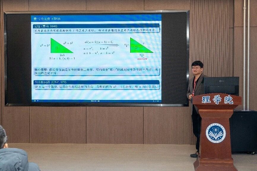 田野应邀作了题为《同余数问题》的报告,他的主要研究领域是数论和算术代数几何,致力于研究同余数问题和BSD猜想等重要问题,其一系列科研成果得到国内外同行的高度评价。