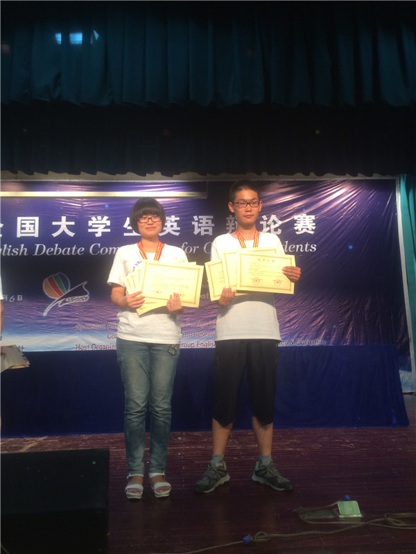 2014年全国大学生英语竞赛(NECCS)全国总决赛暨2014年全国大学生英语夏令营于8月1日—8月6日在沈阳东北大学顺利举行。世界杯官网学生白明怡和邓凯钥代表内蒙古赛区参加了总决赛;他们在全国360名选手中脱颖而出,双双荣获了“辩论赛三等奖”、“演讲赛优胜奖”和“优秀营员”称号。此外,白明怡同学还获得了“英语风采大赛三等奖”。