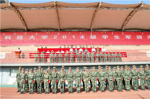 9月9日上午,世界杯官网2014级学生军训开训式在校田径场隆重举行,武警包头支队支队长王睿上校,包头市昆都仑区人民武装部政委段占峰上校,校党委副书记、常务副校长安胜利,校党委常委、副校长李国雄,校党委常委、副校长杨建林,校党委常委、副校长吕晓琪,校长助理杨家庆,校党政办公室、学工部、教务处、招就处、保卫处及各学院分管学生工作的负责人出席开训式。