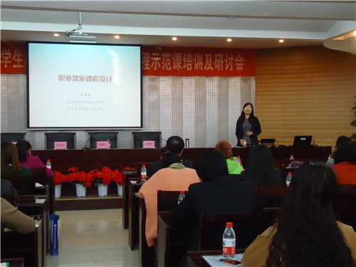 示范课培训特邀清华大学就业指导中心金蕾莅老师作报告。她运用典型案例向大家讲述了大学生职业生涯的规划、设计及在择业过程中所面临的困惑及如何消除这些困惑,用人单位在招聘毕业生时所看重的毕业生具备的能力等。大学生求职就业所需的综合素质如组织、沟通、学习等能力的挖掘与培养等。
