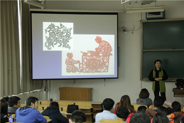 要红霞老师以《如何品读中国传统剪纸与不同国家不同剪纸风格的区别》为题,分别从中国剪纸与外国剪纸的区别、创作途径、及如何赏析等方面做了详细的阐述,引领世界杯官网师生更加剪纸艺术的殿堂。