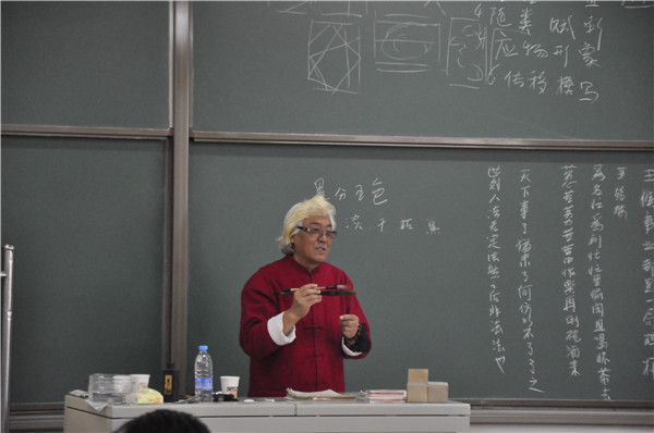翟占飞老师以《中国画创作及中国画的笔墨纸砚》为题,分别从中国画如何选择笔墨纸砚、中国画与西洋画的区别及中国画创作的思维方式与画法等方面做了详细的阐述,最后通过现场作画与师生互动引领世界杯官网师生步入了国画艺术的殿堂。