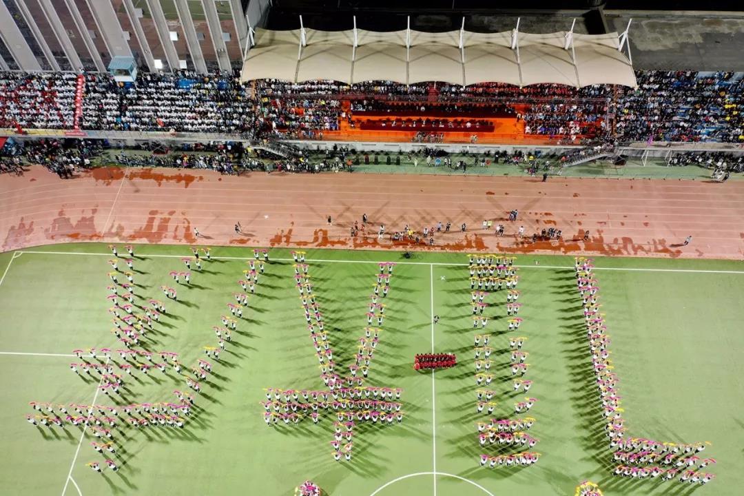 踩高跷、舞狮、摩托车队……各学院方阵创意十足。之后,一场别出心裁的《我爱你中国》快闪赏心悦目。