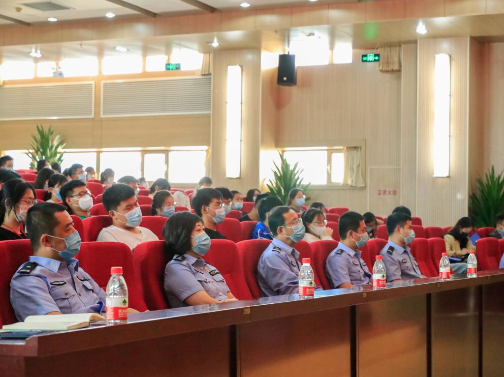 刘志强为学生作反有组织犯罪法专题讲座。讲座围绕有组织犯罪的定义,常见的表现形式以及如何避免遭受有组织犯罪的侵害等内容讲解,并以案示法,用生动的案例为师生敲响警钟,帮助学生提升法律意识和自我安全防范意识,