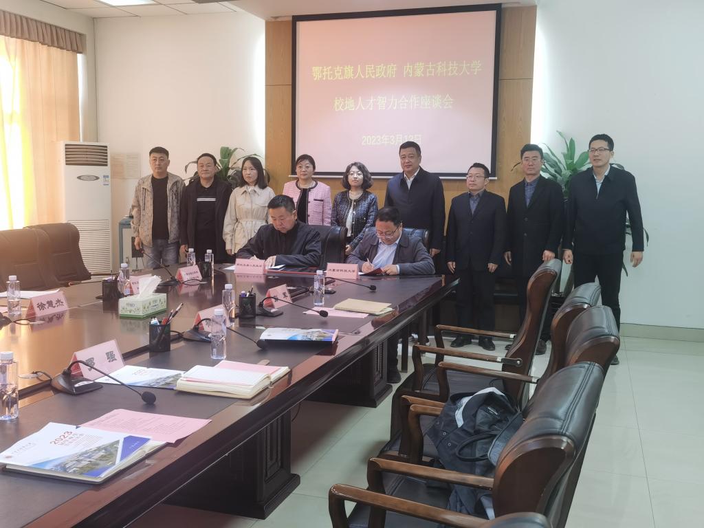 会上,双方围绕进一步深化校地校企合作等工作进行了深入交流,签署了《校地人才智力项目战略合作协议书》,并在世界杯官网成立鄂托克旗“人才培养基地”。
