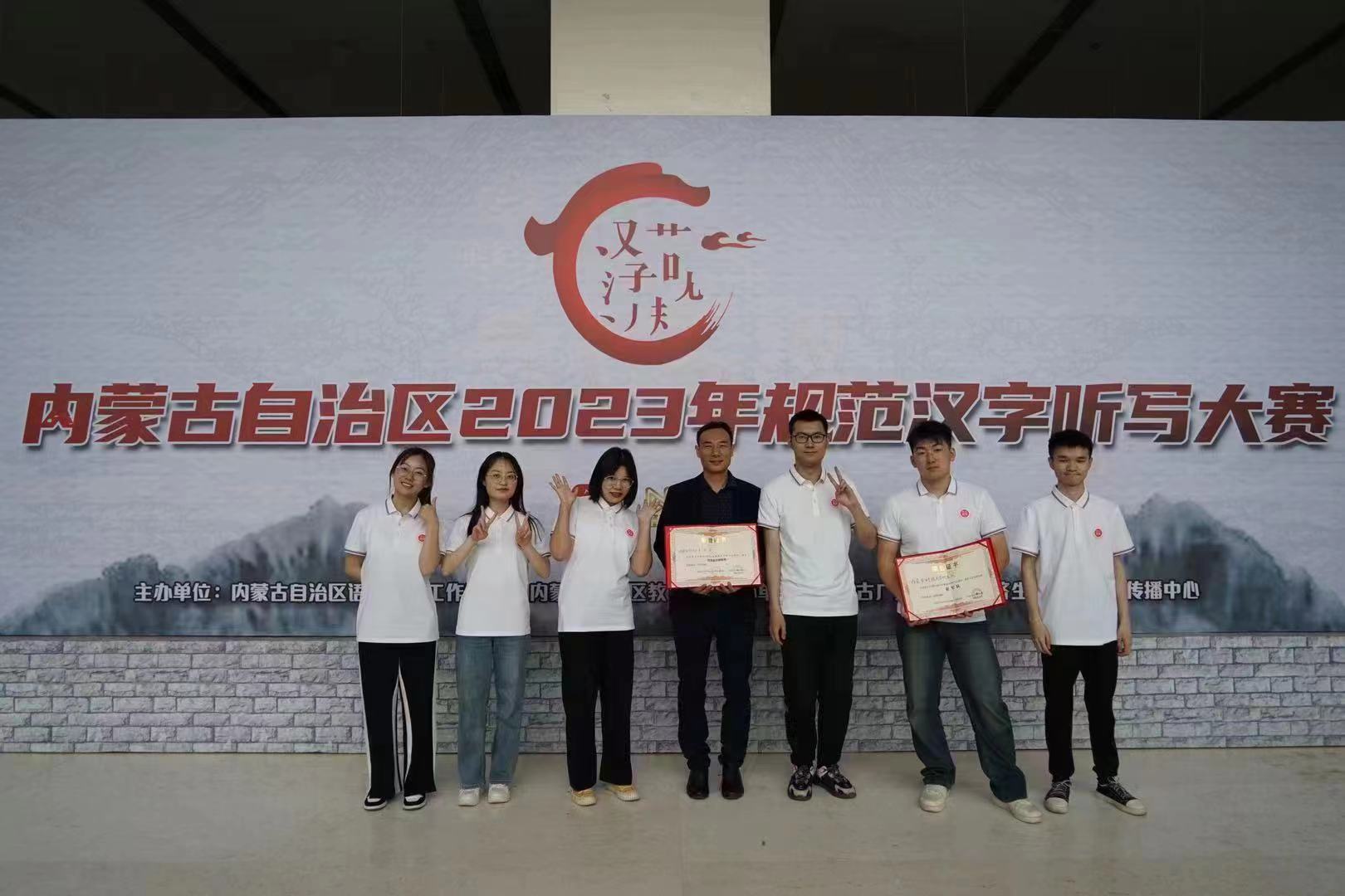4月27日,由自治区语言文字工作委员会、自治区教育厅联合主办,自治区广播电视台承办的2023年内蒙古自治区规范汉字听写大赛(大学本科生组)在内蒙古广播电视台演播大厅举行。世界杯官网杨崴兰、于洋、赵晓颖、马柯、吴昊杰、郝天天6名学生组队获得亚军的好成绩。