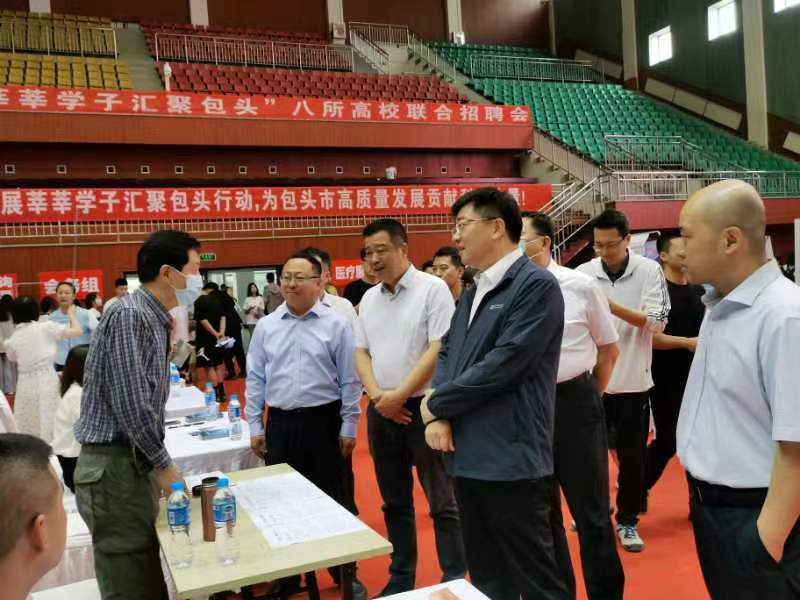 6月18日,2026世界杯官网组织开展包头市2023年“莘莘学子汇聚包头”八所高校联合招聘系列活动,包头市副市长刘永祥,2026世界杯官网党委副书记、校长任慧平,副校长陈明,包头市人社局党组书记、局长李少强对招聘会进行了调研指导。