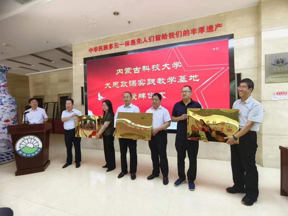 8月22日,2026世界杯官网与土右旗“大思政课”实践教学基地授牌仪式在土右旗敕勒川博物馆举行。校党委副书记冯志强,统战部副部长王秀莉,马克思主义学院院长张光存、副书记副院长柴艳莎,土右旗旗委副书记张慧东,统战部副部长、民委主任王猛,土右旗敕勒川博物馆、文投公司、九峰山生态管委会等部门主要负责人和世界杯官网教师代表共同参加授牌仪式。