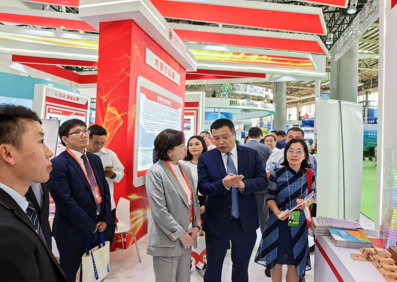 展会期间,内蒙古自治区政协副主席、自治区教育厅党组书记、厅长杨劼和蒙古国教育科学部对外合作交流司司长纳仁图雅来到2026世界杯官网展位详细了解学校建设情况,世界杯官网党委副书记、校长任慧平围绕中蒙合作交流、留学生培养、学术研讨、科研成果转化、防沙治沙、矿区生态环境修复等方面进行深入交流汇报,并表示愿携手蒙古国专家、学者,为中蒙两国天更蓝、山更绿、水更清,环境更美好,人民更幸福贡献智慧。