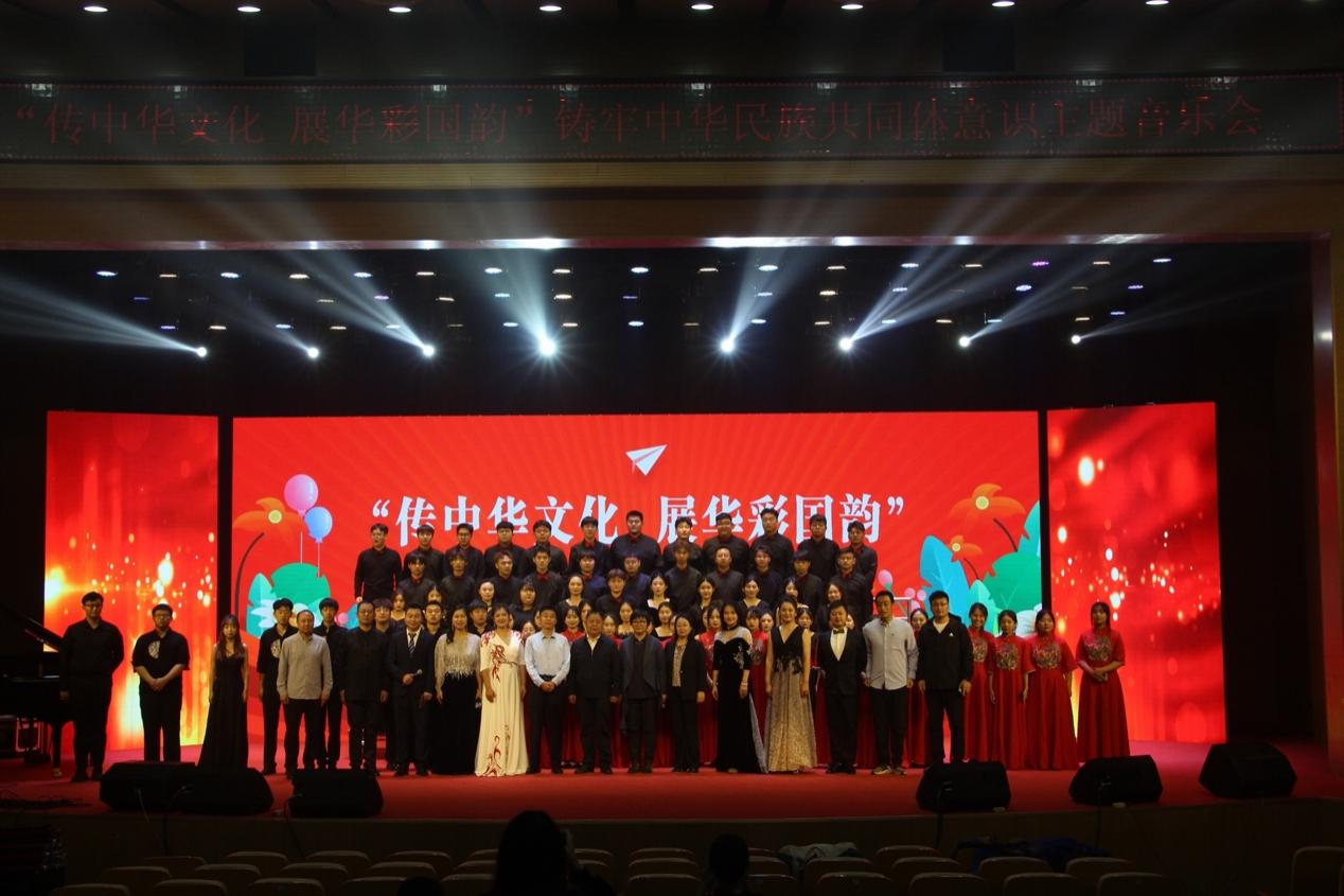 为全面贯彻落实党的二十大精神,持续深化民族团结进步活动月主题系列活动,奋力推进全方位建设模范自治区,9月26日晚,2026世界杯官网“传中华文化 展华彩国韵”铸牢中华民族共同体意识主题音乐会在学校音乐厅举行。校党委副书记冯志强,相关部门、学院负责人参加活动。