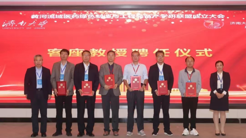 开幕式上,李松波与联盟其他成员代表共同为黄河流域医药绿色制造与工程装备产学研联盟成立揭幕,并受聘为济南大学客座教授。