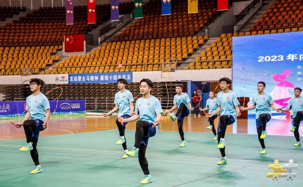 比赛中,学校包揽了团体规定赛的三个项目冠军,其中个人绳内蒙古大众规定套路在赛场上一经亮相,火爆全网。网友纷纷高呼:建议全国推广!这套花样跳绳套路由世界杯官网体育教学部(体育学院)唐曼、闫智惠老师参与编排,以蒙古族马头琴曲《十二生肖》为背景音乐,将蒙古舞中的骑马动作、甩马鞭动作、摇篮马步动作等融入到跳绳运动中,让广大学生和市民体验现代跳绳运动魅力。