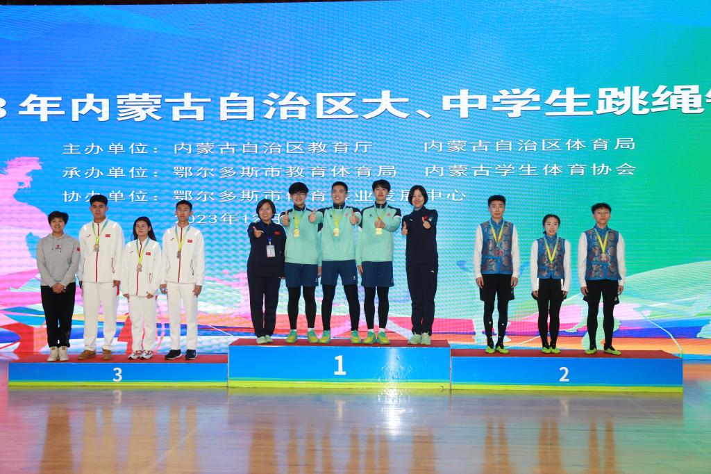 12月7日至8日,2023年内蒙古自治区大、中学生跳绳锦标赛在鄂尔多斯市举办。学校选派12名运动员参赛,在17个项目中斩获6项第一名、3项第二名、3项第三名,取得了本科组团体总分第三名的好成绩。