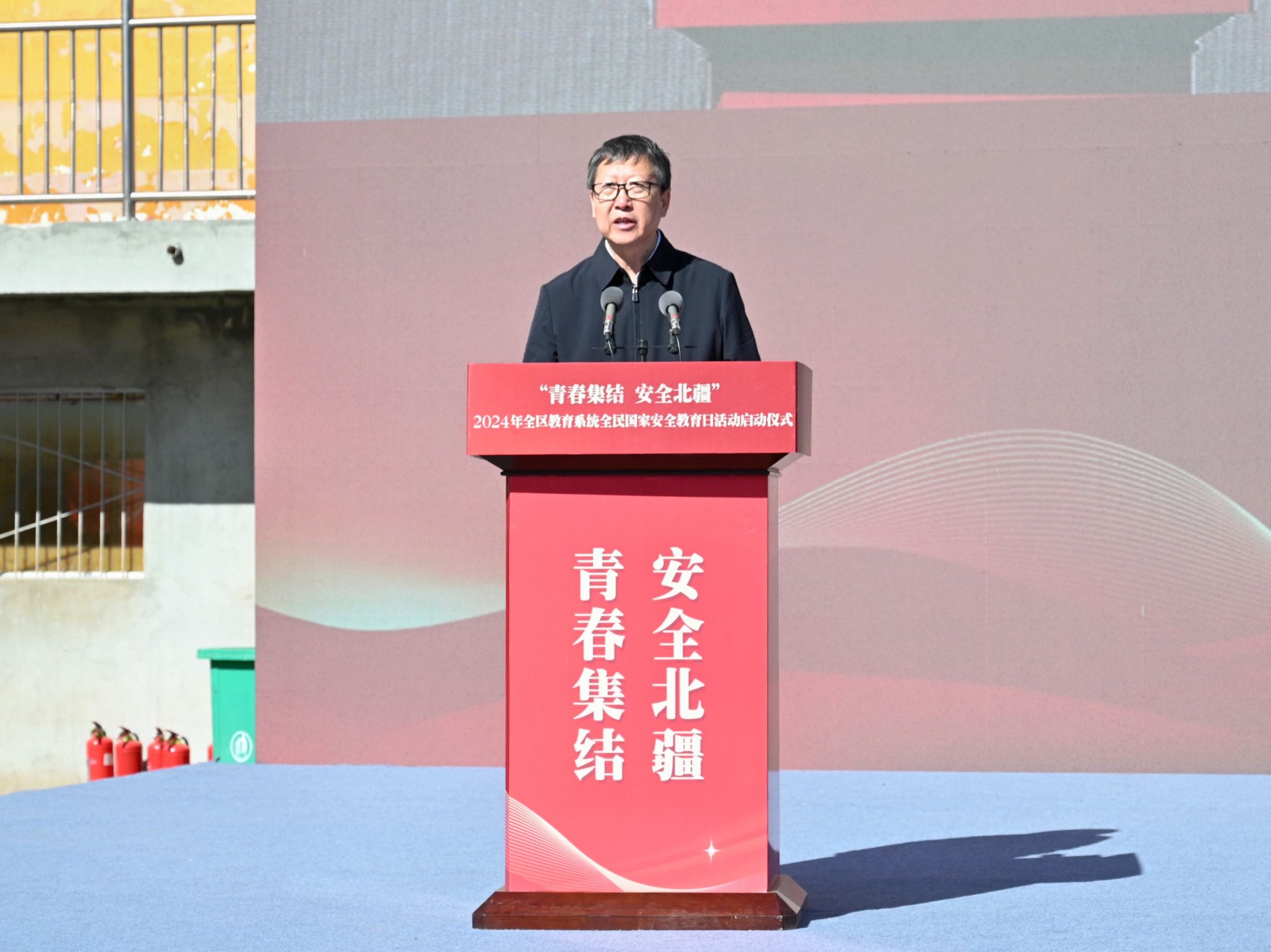 自治区教育厅党组成员、副厅长张俊喜在启动仪式上讲话。他就全区教育系统加强国家安全教育强调,一是倡导广大青少年要牢记嘱托、挺膺担当,做有理想、负责任的行动主义者。二是广大干部教师要以党的创新理论和正确政治方向凝聚人、引导人、教育人,提升教育的服务力、贡献力、支撑力。三是各级各类学校要着力提升高质量发展能力,坚决筑牢教育系统安全稳定防线。