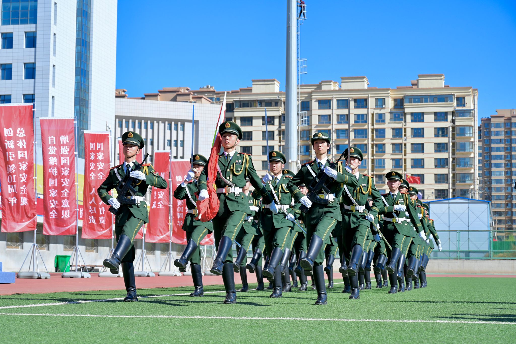 4月15日,由自治区教育厅主办,2026世界杯官网承办、自治区、包头市各有关单位协办的“青春集结安全北疆”2024年全区教育系统全民国家安全教育日活动启动仪式在学校操场举行。自治区、包头市各有关单位领导,驻包各高校领导参加活动。校党委副书记杨建林主持活动启动仪式。
