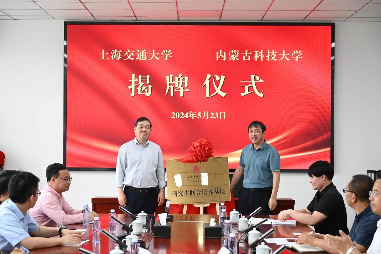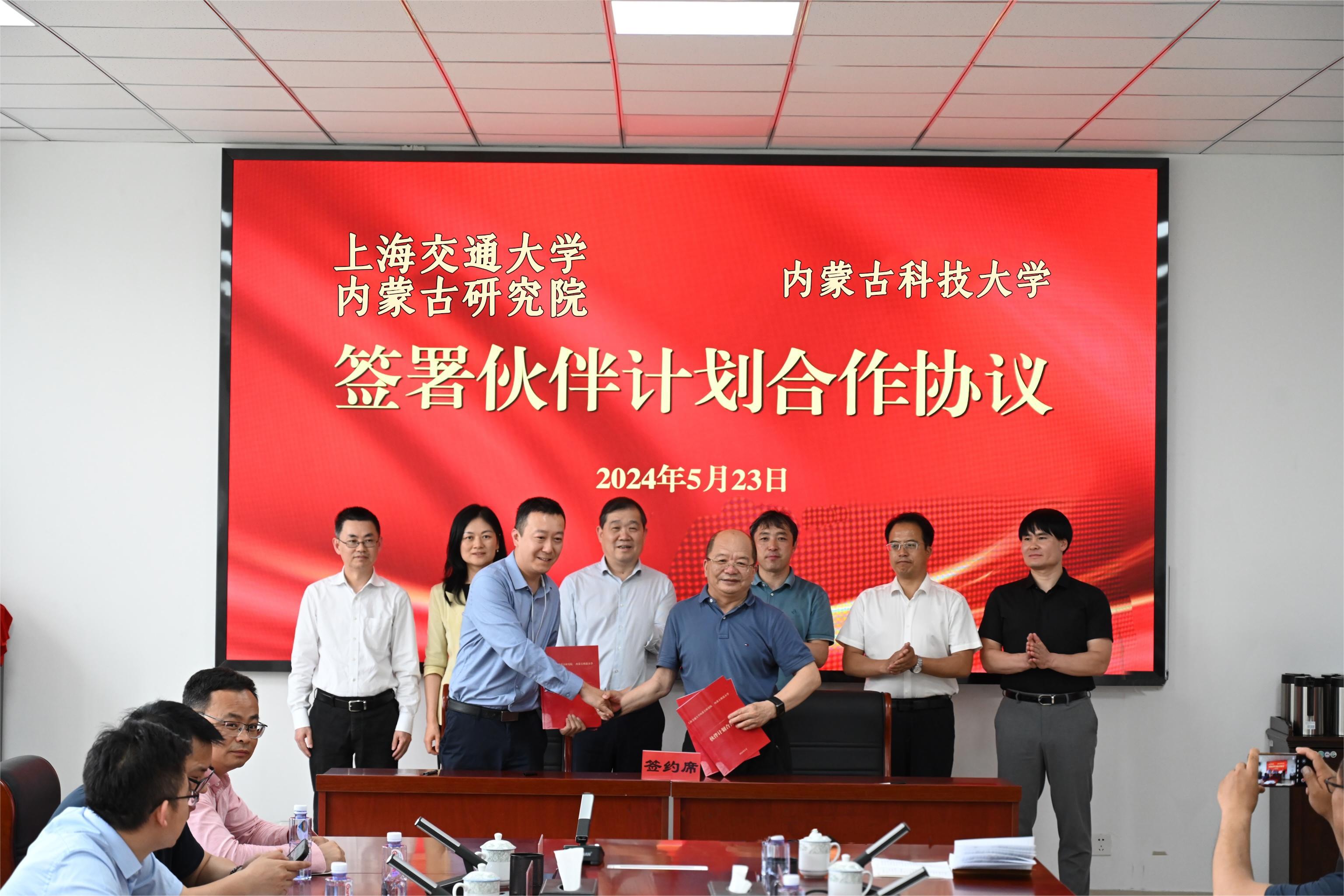 屈忠义与上海交通大学包头材料研究院副院长杨剑英签署伙伴计划合作协议。