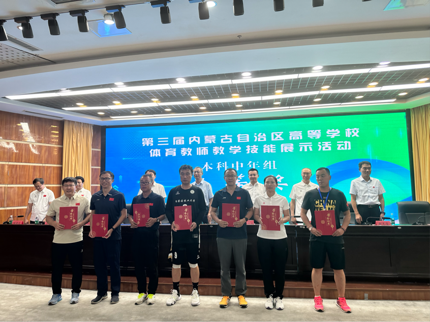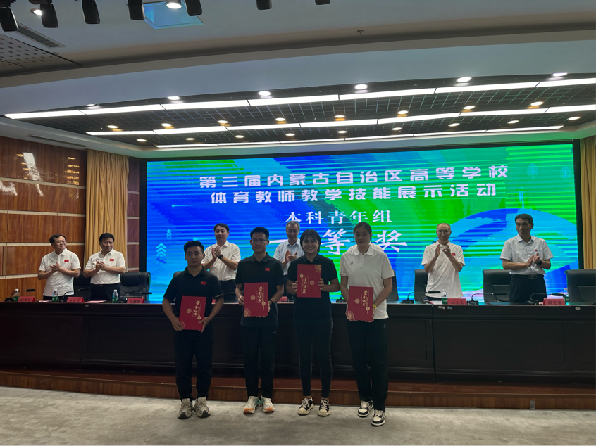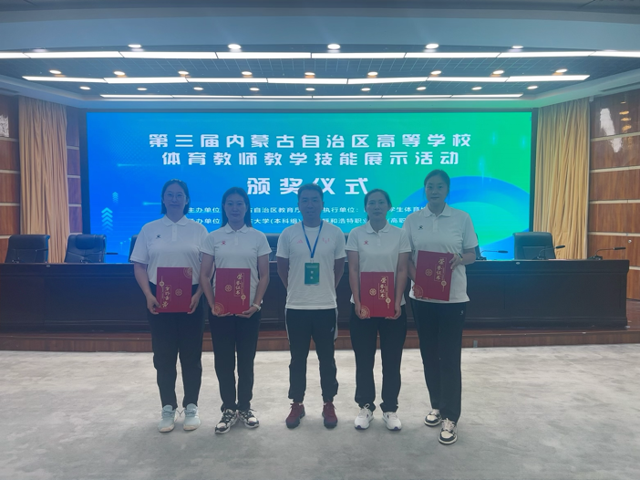 8月28至30日,第三届内蒙古自治区高等学校体育教师教学技能展示活动在内蒙古大学和呼和浩特职业学院举行,世界杯官网体育教学部(体育学院)教学办公室主任李健功带队参赛,体育教学部(体育学院)教师宋萌获得中年组一等奖、孙耀兰获得青年组一等奖、任苏佳获得青年组二等奖、陈中华获得中年组三等奖。