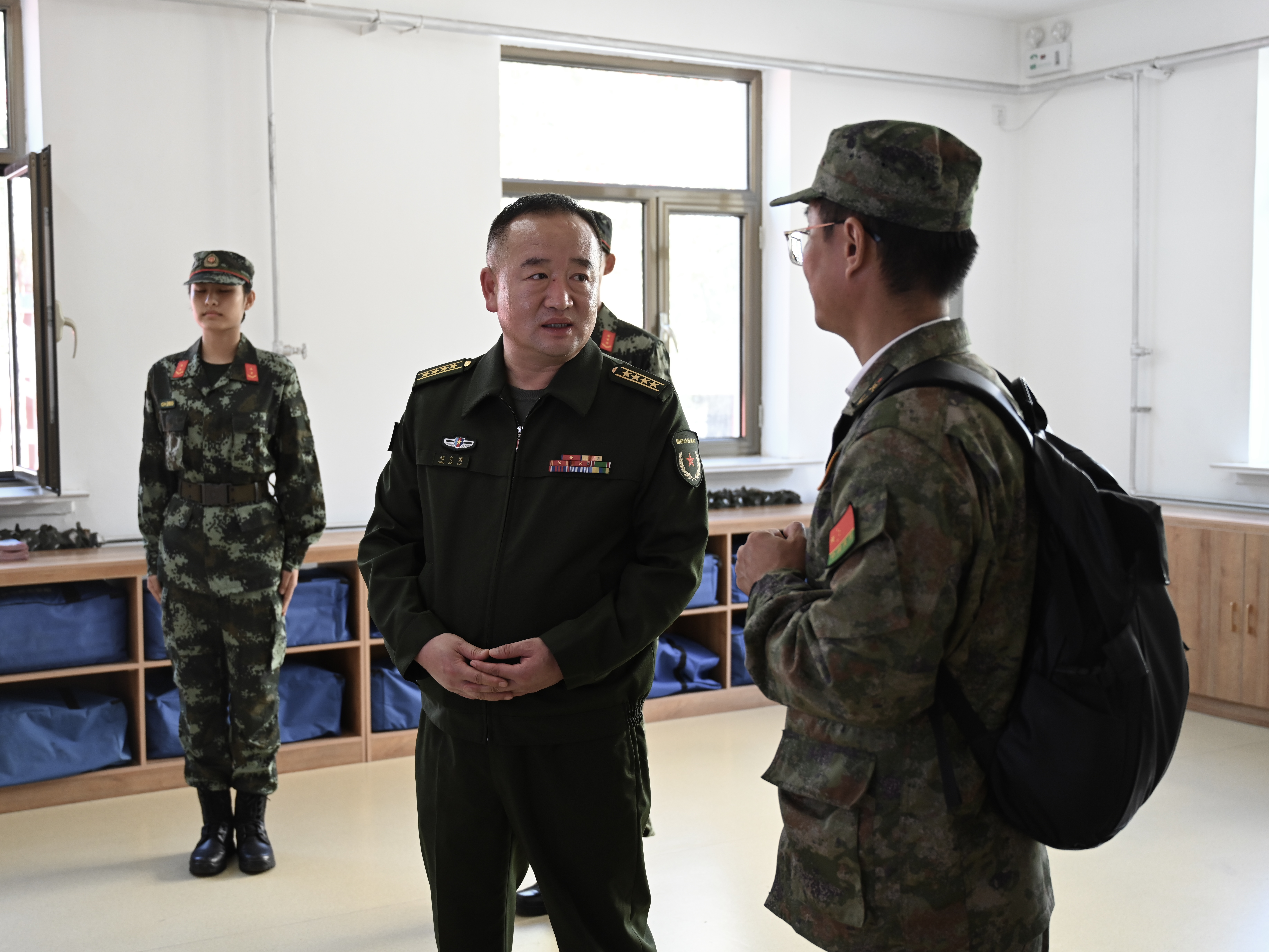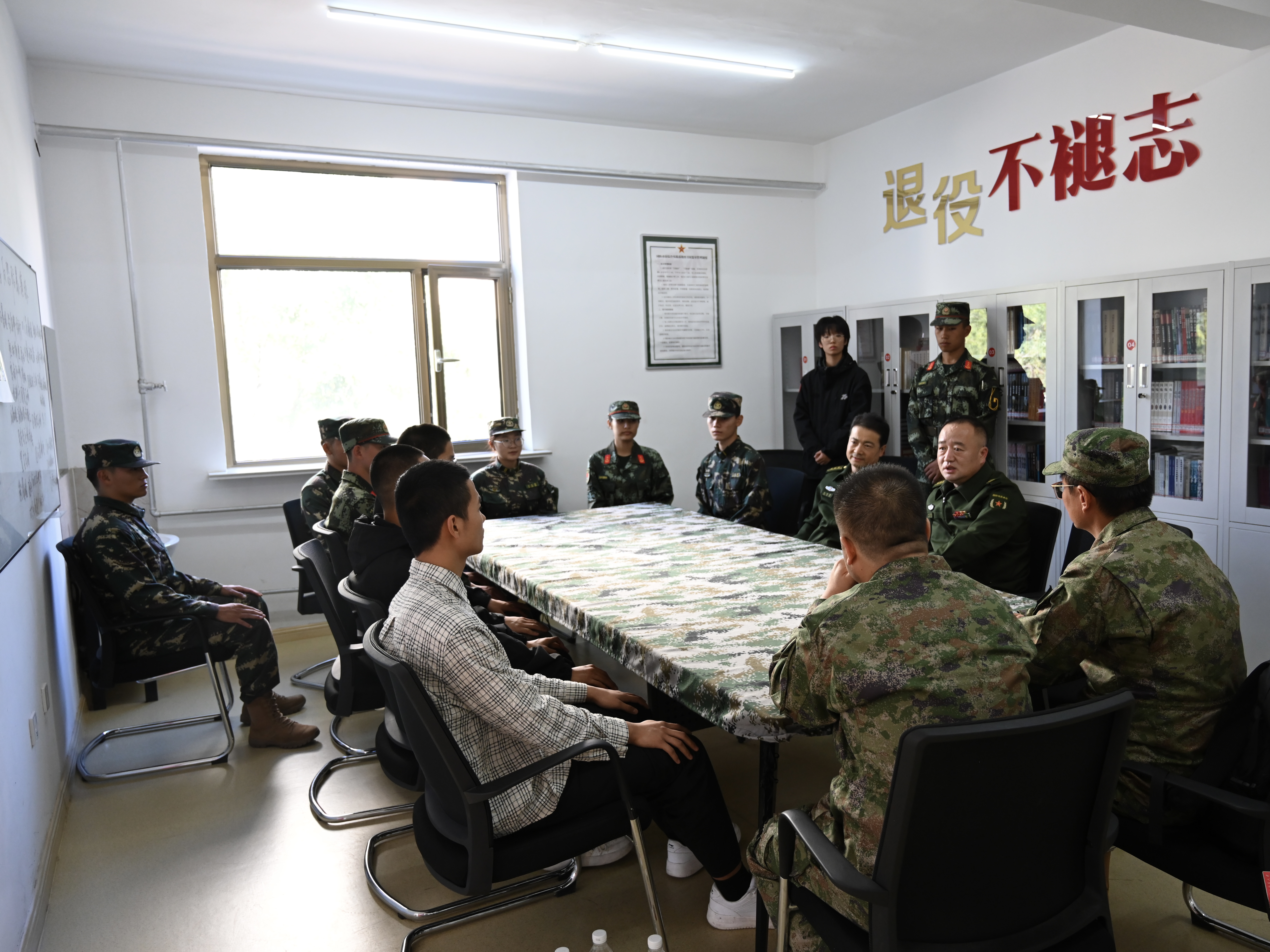此外,程大校还与退役大学生代表、砺剑社团成员及国旗护卫队同学进行了亲切座谈,鼓励他们继续发扬军人精神,为校园文化建设和国防教育事业贡献力量。