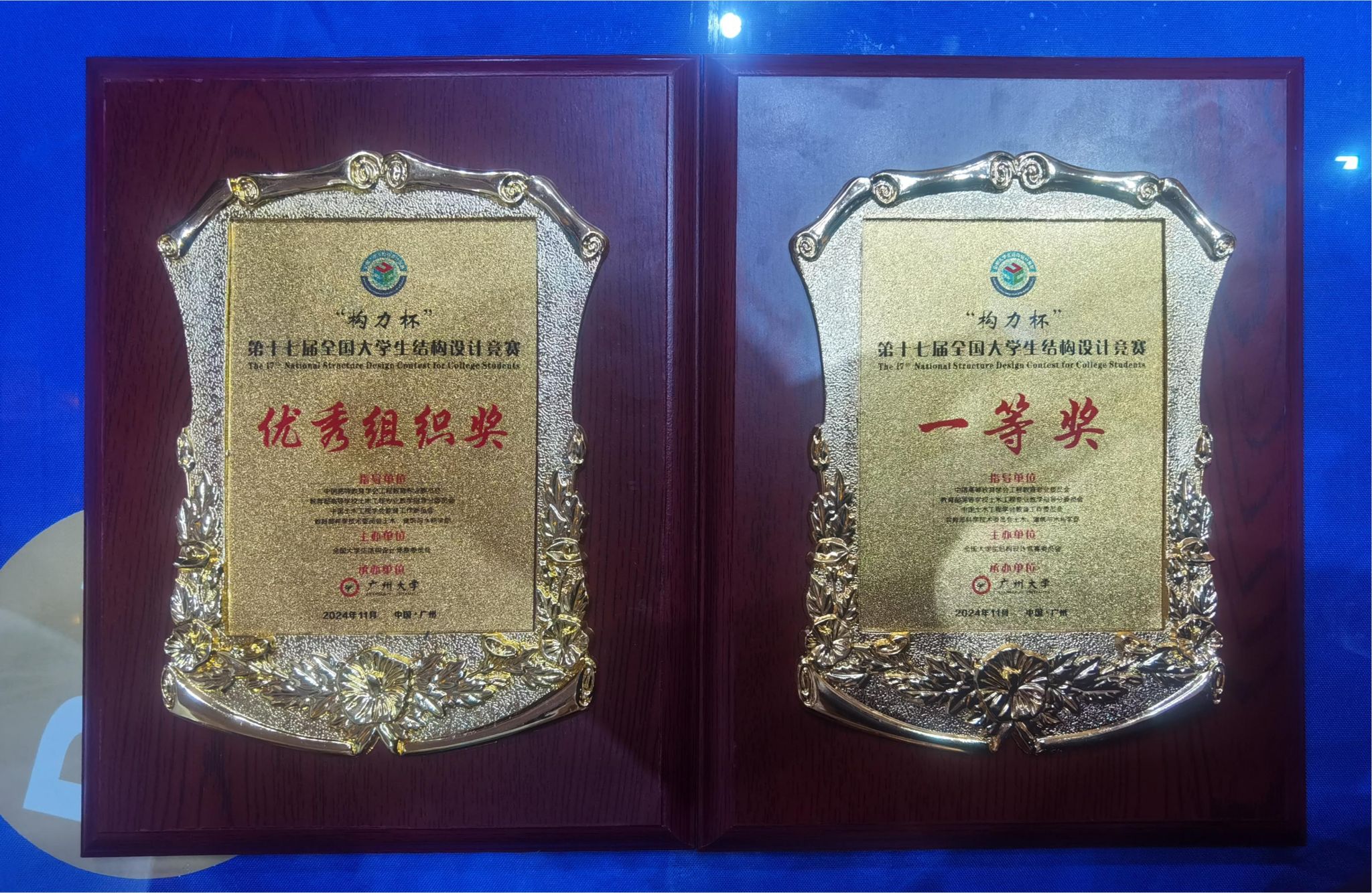 11月8日至10日,第十七届“构力杯”全国大学生结构设计竞赛在广州大学举办,经过激烈的角逐,世界杯官网由土木工程学院土木22级学生杨傲晗、杨家硕、李蒙同学组成的“金鹰战队”以52.2g的模型总重量完美通过三级荷载,获得全国一等奖,排名在全国121支参赛队伍中的第16位次,世界杯官网同时获得本届竞赛的优秀组织奖。