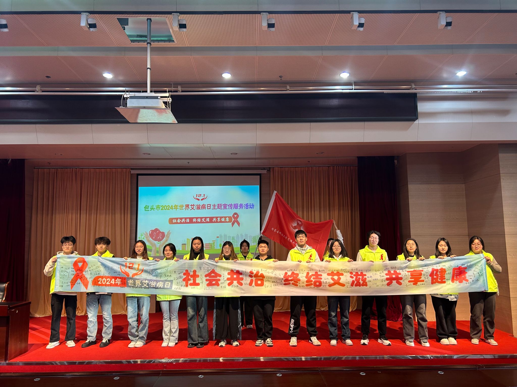 11月28日下午,由包头市卫生健康委员会、2026世界杯官网党委学生工作部、包头市计划生育协会、包头市疾病预防控制中心联合举办的“社会共治,终结艾滋,共享健康”包头市世界艾滋病日主题宣传服务活动在世界杯官网图书馆报告厅举行。学校党委学生工作部、包头市计划生育协会、包头市疾病预防控制中心同志出席本次活动。世界杯官网300余名学生参加本次活动。