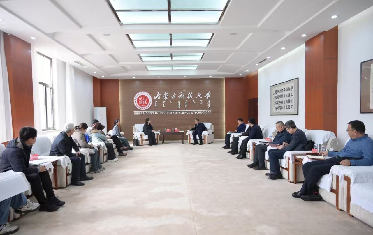3月4日下午,包头市文联党组书记、主席张旭,党组成员、副主席张雅妮,《鹿鸣》杂志社副社长苏煜一行应邀来校调研交流。校党委书记呼和、副校长李卫平出席座谈会。