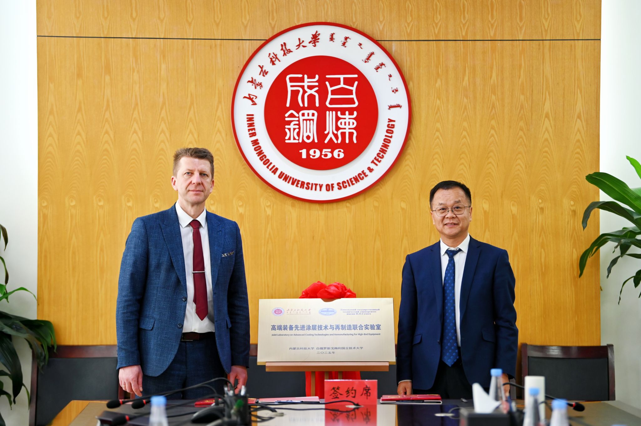 李卫平与里戈尔·佩特里申共同为“高端装备先进涂层技术与再制造联合实验室”揭牌。