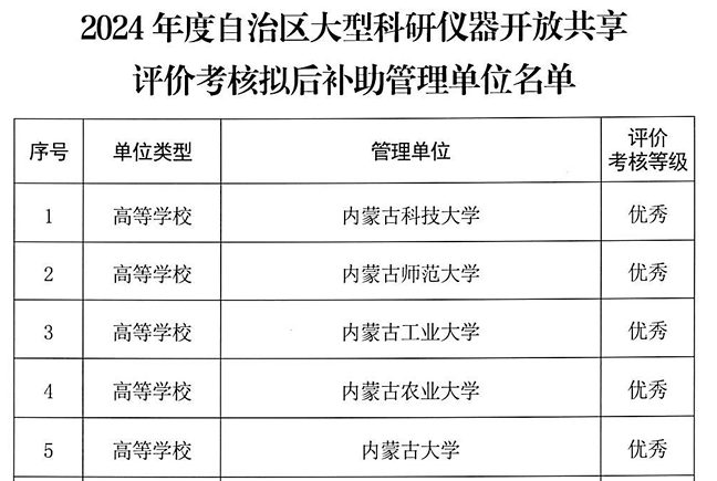 5月6日,自治区科技厅发布了《关于公示2024年度自治区大型科研仪器开放共享评价考核拟后补助名单的通知》,世界杯官网获评考核“优秀”单位。