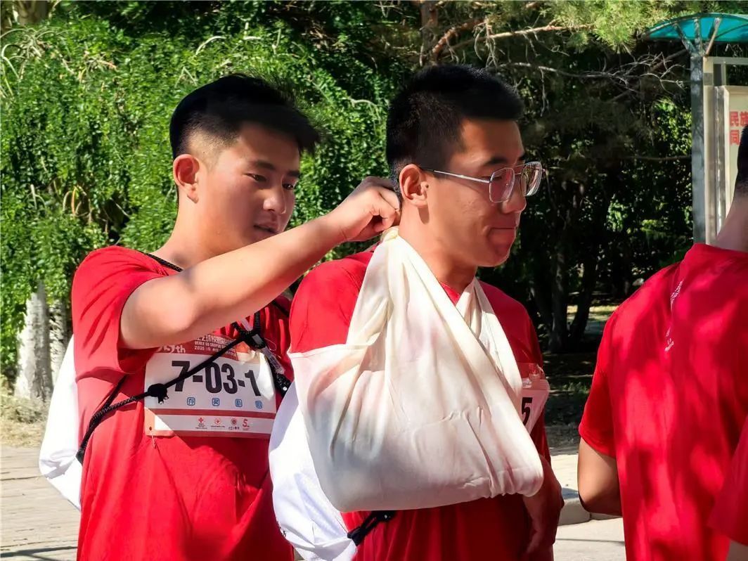 比赛中,各参赛队伍展现出了良好的团队协作精神和扎实的急救技能,队员们相互配合,在各个任务点迅速、准确地完成操作,依靠过硬的急救技能和高效的团队配合,出色地完成了心肺复苏、创伤包扎、伤员转运等多项急救任务。他们沉着冷静的临场表现和规范娴熟的技术动作,充分展现出了当代青年大学生的责任担当与专业能力,赢得了裁判和观众的一致好评。