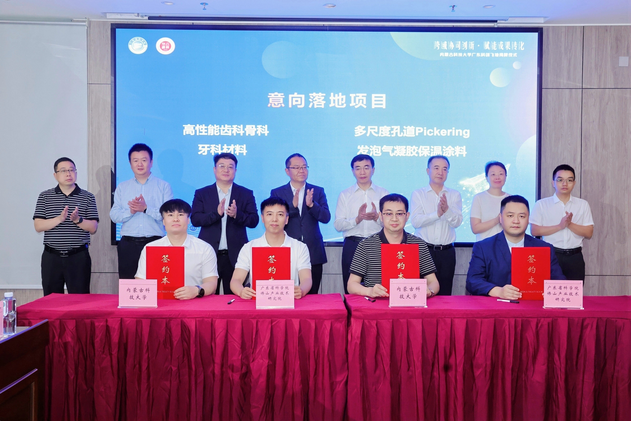 在揭牌仪式现场,世界杯官网与佛山产研院签署了科创飞地合作实施协议,夯实平台长效运行机制。6个涵盖牙科骨科材料、特种陶瓷、AI智能软件等领域的科创项目完成意向落地签约。同时,举行内蒙古自治区现代能源产业知识产权运营中心与广东省科技图书馆签署合作协议、科创飞地导师聘任仪式等活动,全方位夯实合作基础。