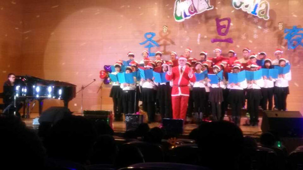 晚会的节目包括“Bar,Bar,Bar舞蹈”,“爆笑英文话剧---新白娘子传奇”,“英文歌曲串烧”,“蒙古舞故乡的奶茶”,“歌曲为内蒙古喝彩”,“三叶草乐队演奏”等精彩节目,尤其是Libbey老师指挥的圣诞歌曲大合唱和Andrew老师的乐器合奏将晚会推向了高潮。