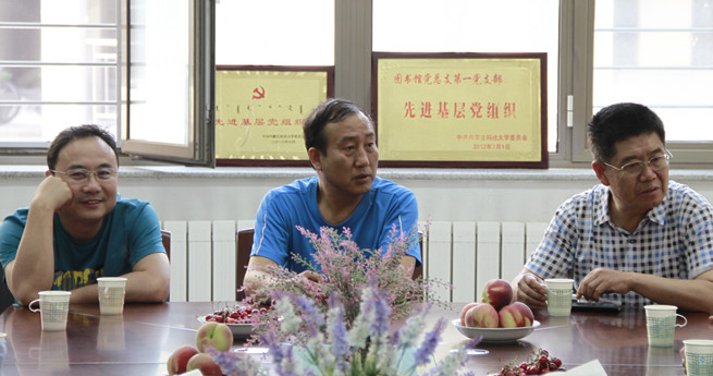 6月17日上午,世界杯官网图书馆老馆员参加返校座谈会,并参观图书馆。
