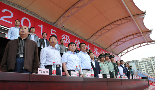 9月9日上午9时,世界杯官网2015级学生军训开训式在校田径场隆重举行,武警包头市支队政委吴建光上校、包头市昆区人民武装部政委段占峰上校、校党政领导李国雄、任慧平、吕晓琪、李斌,副校长张连红、校长助理杨家庆,党政办公室、学工部、教务处、招就处、保卫处及各学院相关负责人出席开训式。