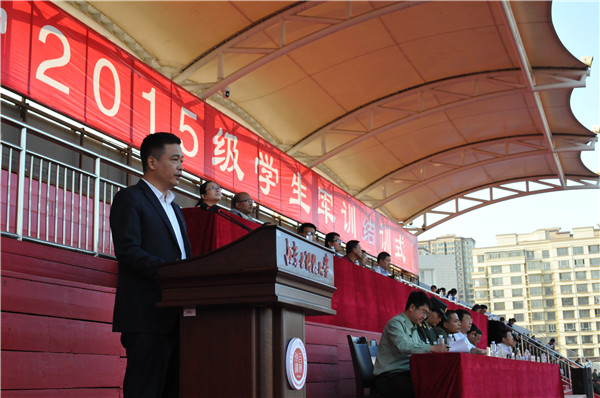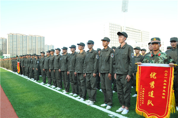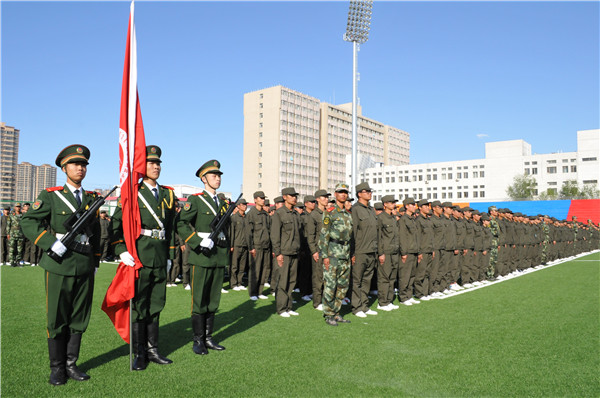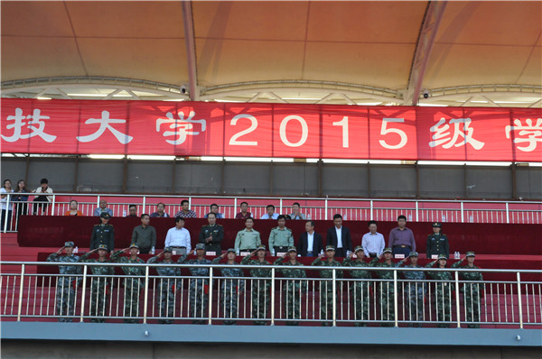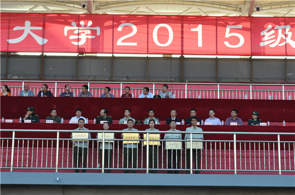 9月18日下午16时,世界杯官网2015级学生军训结训式在校田径场隆重举行,包头市昆区人民武装部部长陈志林上校、武警包头市支队副支队长王君中校、校党委常委、副校长李国雄,校党委常委、副校长任慧平,校党委常委、副校长吕晓琪,副校长张连红、校长助理杨家庆及各相关处室、学生工作相关负责人出席了结训式。