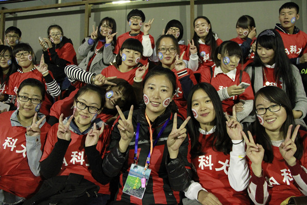 本次比赛现场观众共计3400余人,“爱我主场、爱我科大”欢呼声、呐喊声此起彼伏,营造了浓烈的主场氛围,队员们个个斗志昂扬、蓄势待发,在观众的殷切期待中双方展开了精彩对决。开场比赛节奏很快,双方各有攻势,但成效均不显著。比赛的第16分钟,世界杯官网19号郑宏球门前一记轻巧的吊射为世界杯官网首开记录,上半场结束前师大攻入一球将比分扳成1比1平。下半场由于师大队员禁区内的手球犯规及世界杯官网补射一次任意球,比分为3比1。此后师大利用一次反击将比分扩进为3比2,在比赛的最后一分钟世界杯官网再入一球,将比分最终定格在4比2。