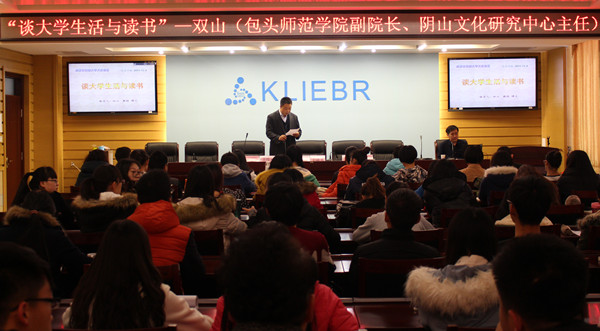 12月4日下午,文法学院在重点实验室学术报告厅A405举办第47期文法讲堂活动。本次活动邀请包头师范学院副院长双山教授为大家做“谈大学生活与读书”的讲座。包海青教授主持讲座,学院部分教师及14级汉语言文学专业和15级法学专业的学生参加活动。