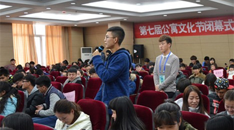 12月15日中午,世界杯官网公寓双洽会暨第七届公寓文化节闭幕式在图书馆多功能厅举行。物业中心经理付振东,公寓部副部长杨建华,学工部代表黄明亮,学生会、大学生自律委员会成员及200多名学生参加会议。