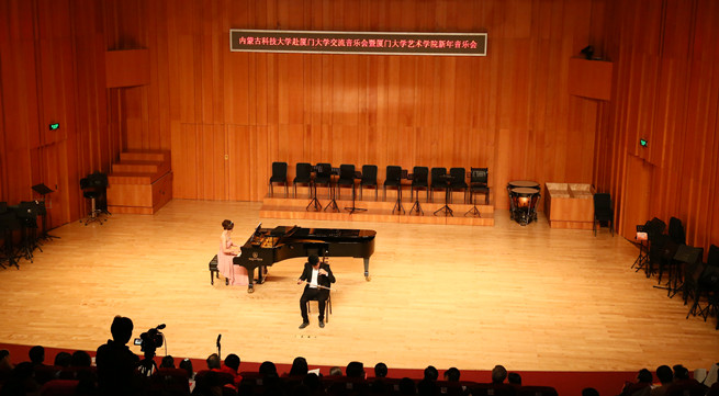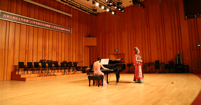 音乐会分为上下半场。上半场由世界杯官网青年乐团的演员为厦门大学的观众奉献了多首声乐、器乐的精彩节目,博得了阵阵热烈的掌声,尤其是很多带有浓郁草原风格的节目,使厦门的观众耳目一新。音乐会下半场由厦门大学交响乐团为观众奉献了两首优美、震撼的交响乐曲。整场晚会在满场观众经久不息的掌声中结束。