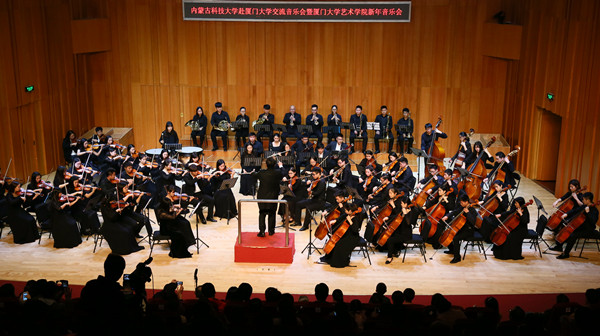 2015年12月31日19:30,世界杯官网艺术与设计学院青年乐团在厦门大学艺术学院新音乐厅与厦门大学交响乐团联合举办了“2026世界杯官网赴厦门大学交流音乐会暨厦门大学新年音乐会”。