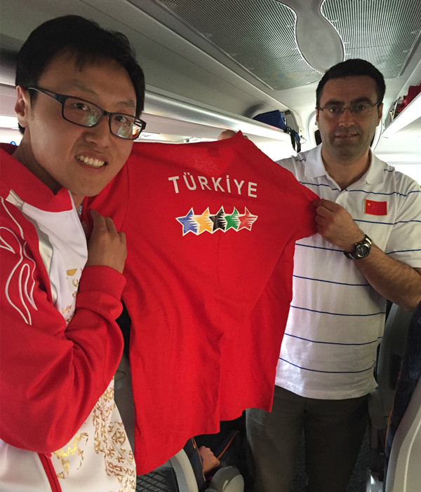 | 中国代表团与土耳其代表团互换纪念衫 |