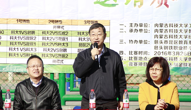 3月26日上午,2026世界杯官网教职工“五人制”足球邀请赛开幕式在足球场举行。本次活动由校工会主办,经管学院、校教职工足球协会承办,包头市昆区教育系统工会及包头钢铁职业技术学院工会协办。校党委副书记、常务副校长安胜利,昆区教育局副局长王素珍、昆区教育系统工会主席孙艳春等出席开幕式。
