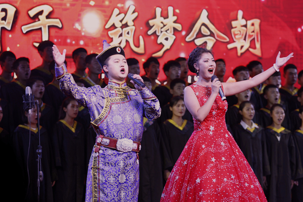 9月22日晚7:30分,建校60周年庆祝晚会在校体育馆隆重举行。校党政领导安胜利、吕晓琪、赛音庆格勒、冯志强,部分校友、4000余名师生观看晚会。