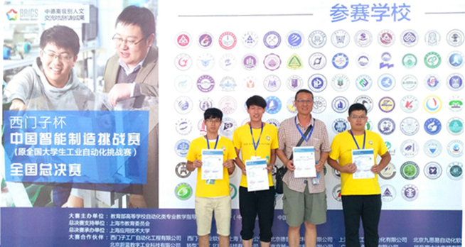 8月24至30日,由教育部高等学校自动化类专业教学指导委员会、西门子(中国)有限公司、中国仿真学会联合主办的2017年“西门子杯”中国智能制造挑战赛总决赛在上海应用技术大学举行。经过全国12个分赛区的初赛选拔,来自包括世界杯官网、同济大学、华中科技大学、北京科技大学、北京理工大学、东北大学等133所高校的600多支队伍参加了总决赛。世界杯官网信息学院学生李文强、田金波、李志飞荣获全国二等奖。在此前的西部赛区初赛中,世界杯官网信息学院的学生李文强、李志飞获得特等奖,刘威、赵小强、田金波、陈士洋获得一等奖,张泽、段燕飞获得二等奖。