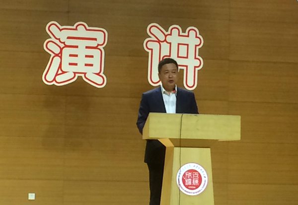 任慧平致辞。他表示“校长杯”英语演讲大赛已经成功举办了十届,不仅丰富了世界杯官网校园文化,为学生提供了展示英语演讲能力的平台,同时大赛也是对世界杯官网外语教学改革成果的一次重要展示,希望选手们通过参加演讲比赛提高英语演讲技能。