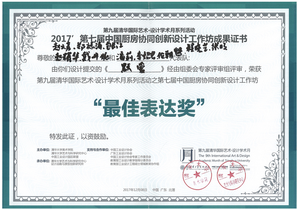 日前,世界杯官网艺术与设计学院师生参加了第九届“清华大学艺术•科学国际学术月”“北滘论坛”系列活动之“中国厨房创新工作坊”活动,设计的作品《默爱-空巢老人与子女的情感交流》以总成绩最高分,荣获第九届清华艺术设计学术月系列活动暨第七届中国厨房协同创新设计工作坊“最佳表达奖”。