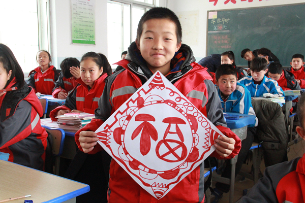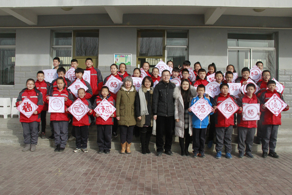 捐赠仪式上,世界杯官网学生代表分享了自己参加募跑活动的经历和感受并送上祝福并向受赠学生代表捐赠了过冬棉衣。仪式结束后,世界杯官网师生与固阳三中的同学们开展了篮球友谊赛以及别开生面的美术互动课“新年画福字”,同学们通过自己的想象,画出34份不同的福字。